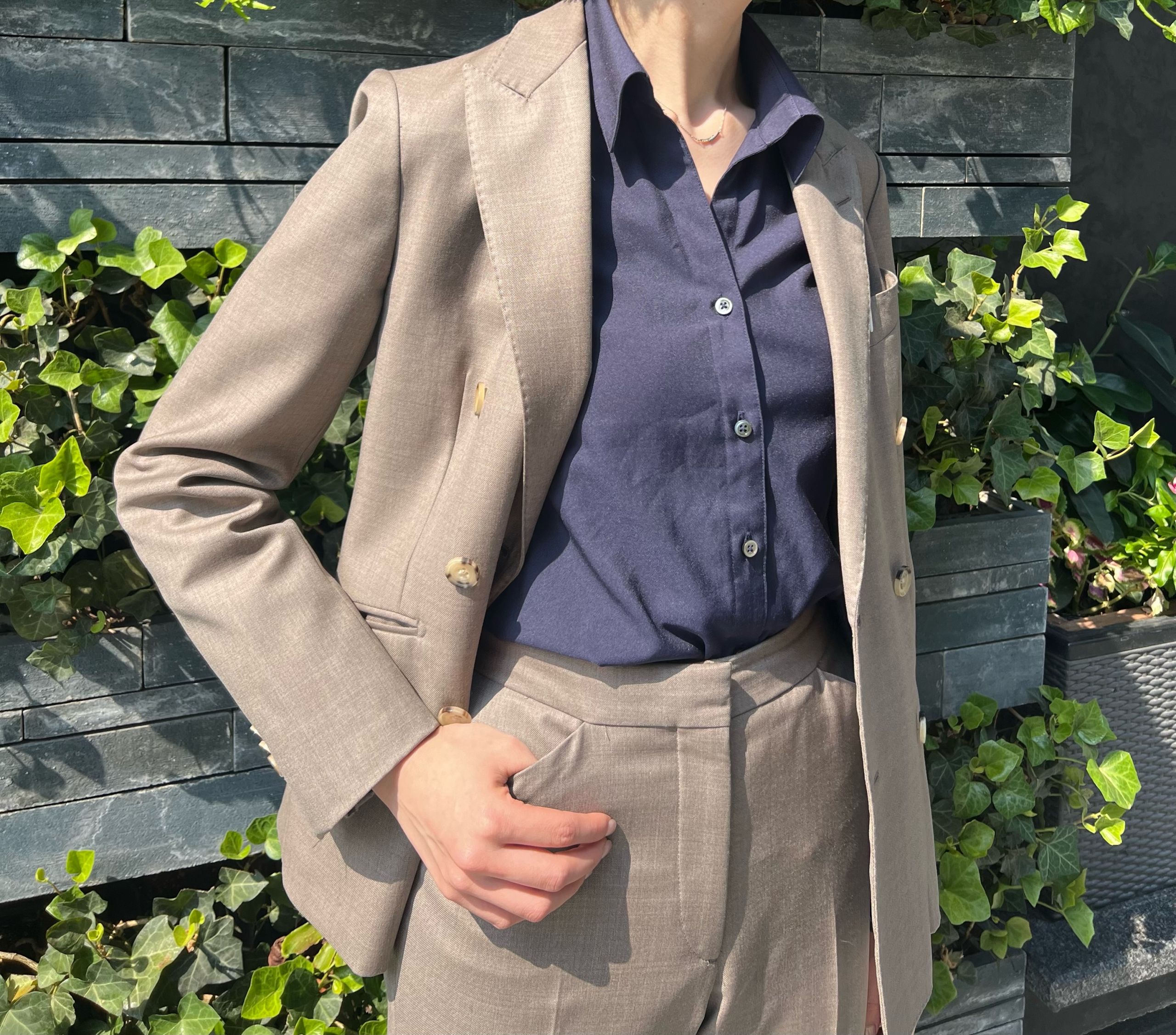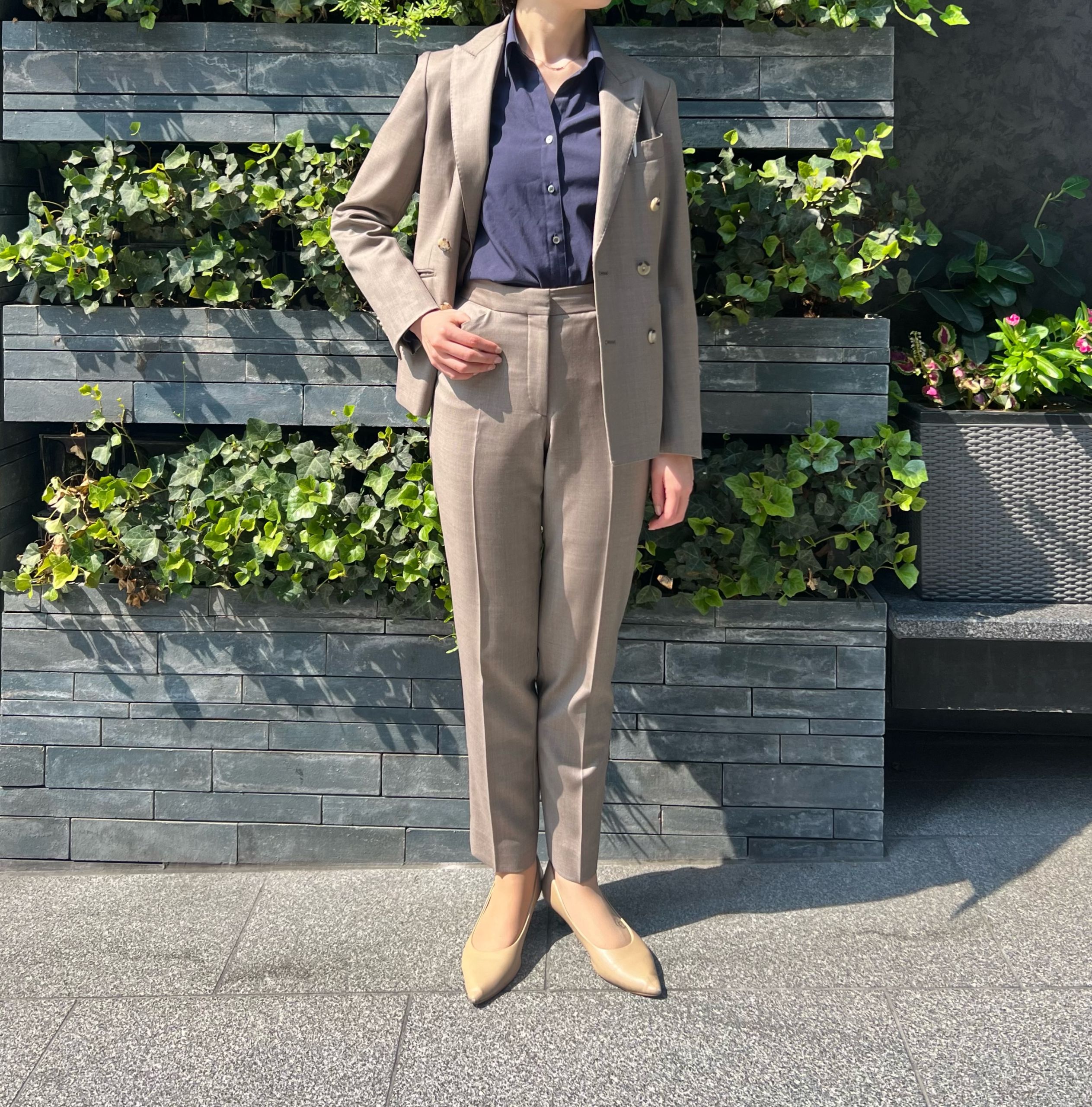 それからスーツ生地がベージュな為、足元も同じ色味のパンプスを入れており