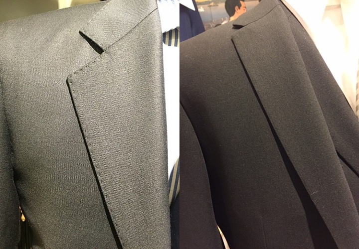ビジネススーツにはAMFステッチ、カジュアルスーツやジャケパンにはミシンステッチ