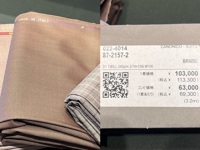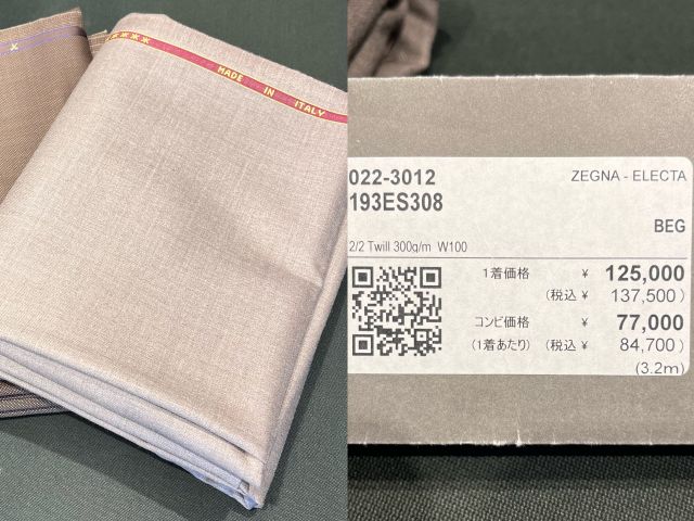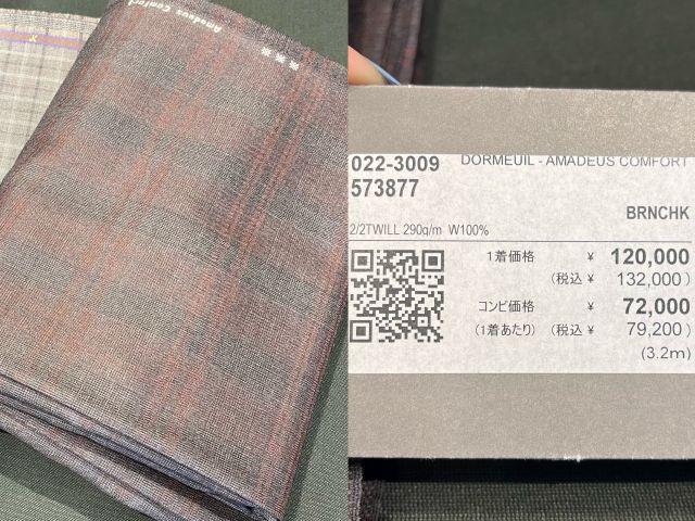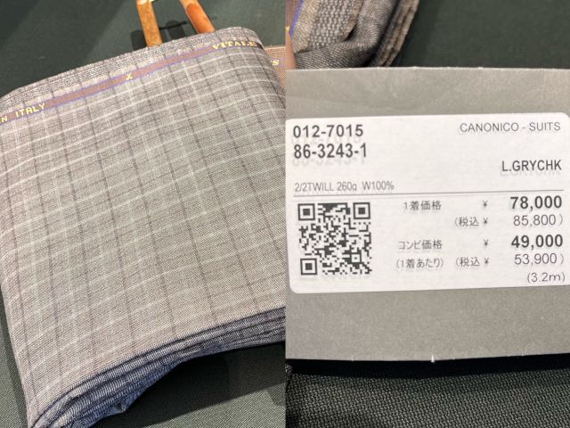 今回紹介させて頂いた生地の金額になります ↓