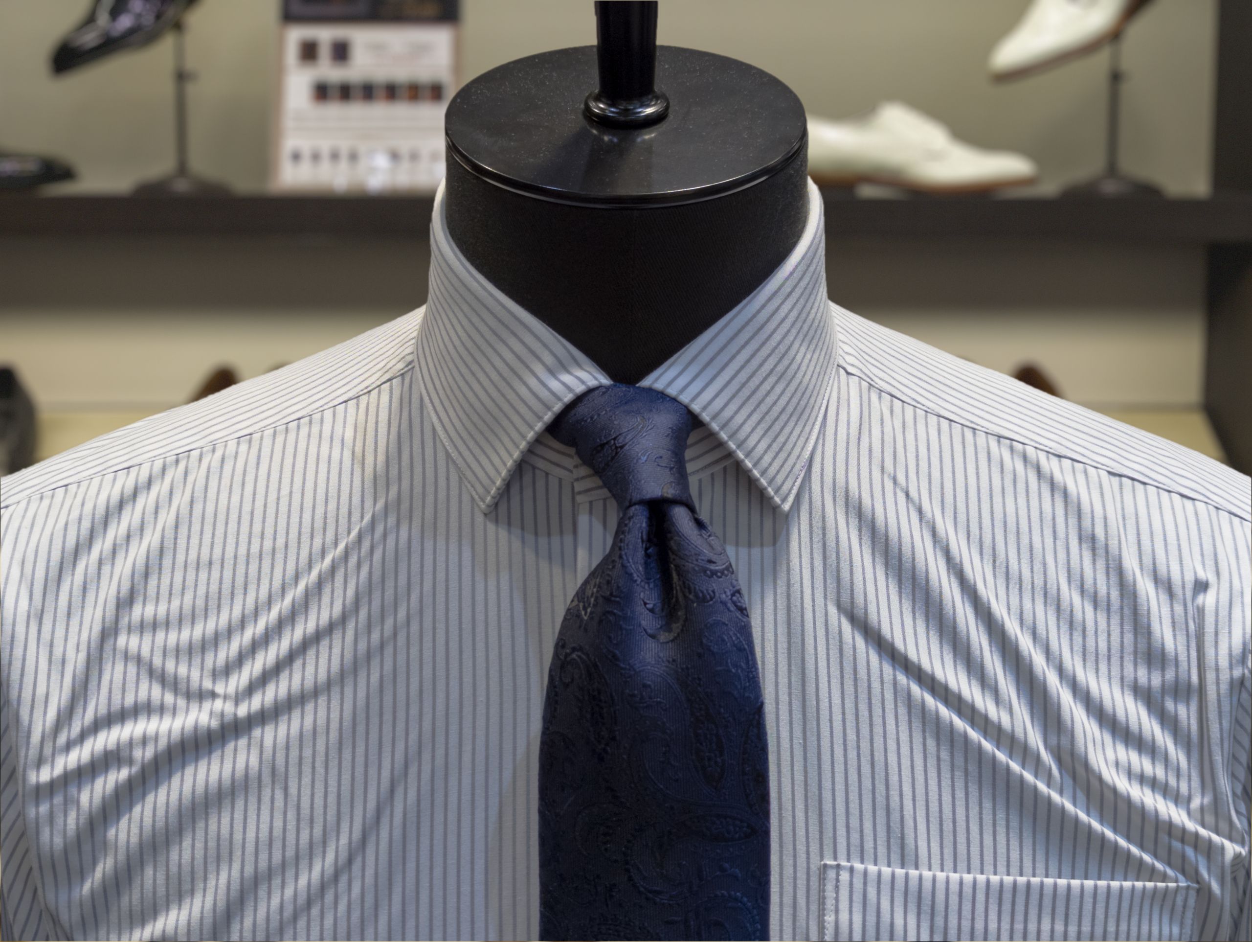 ただし、ウィンザーカラー(別名ワイドスプレッド・カラー)と呼ばれる開きが大きい襟型も好まれています。