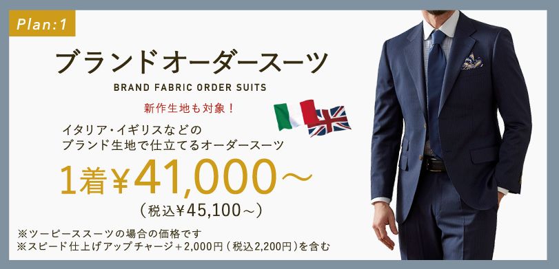 2種類があり、ブランドオーダースーツの価格は1着¥41,000(税込¥45,100)~、