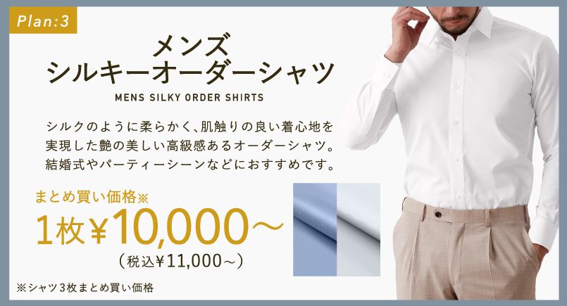 その他にも、3週間で仕上がるメンズシルキーオーダーシャツも人気です!!