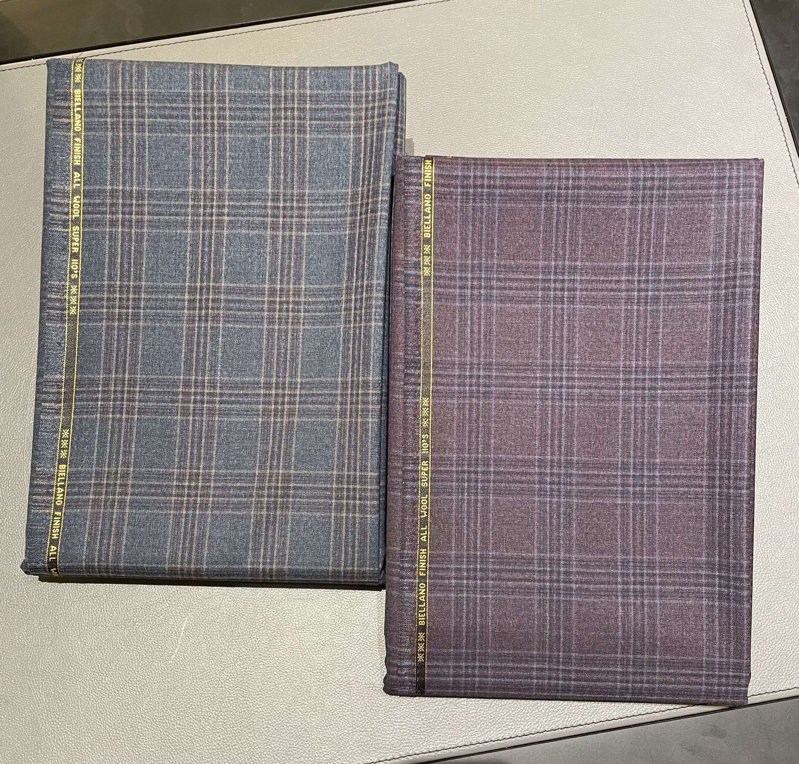 写真では分かりにくいのですが、左側はブルーを地の色に、茶色やベージュの格子柄、右側は赤紫に薄紫やブラックの格子柄となっております。