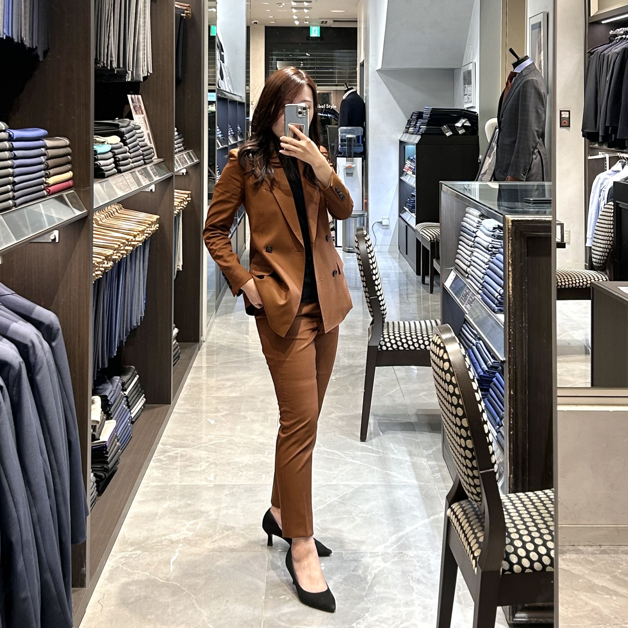 このような華やかなスーツを着るのは久しぶりなのでなんだか慣れませんが、深みがあって思ったより鮮やかでない色なので着やすいです。