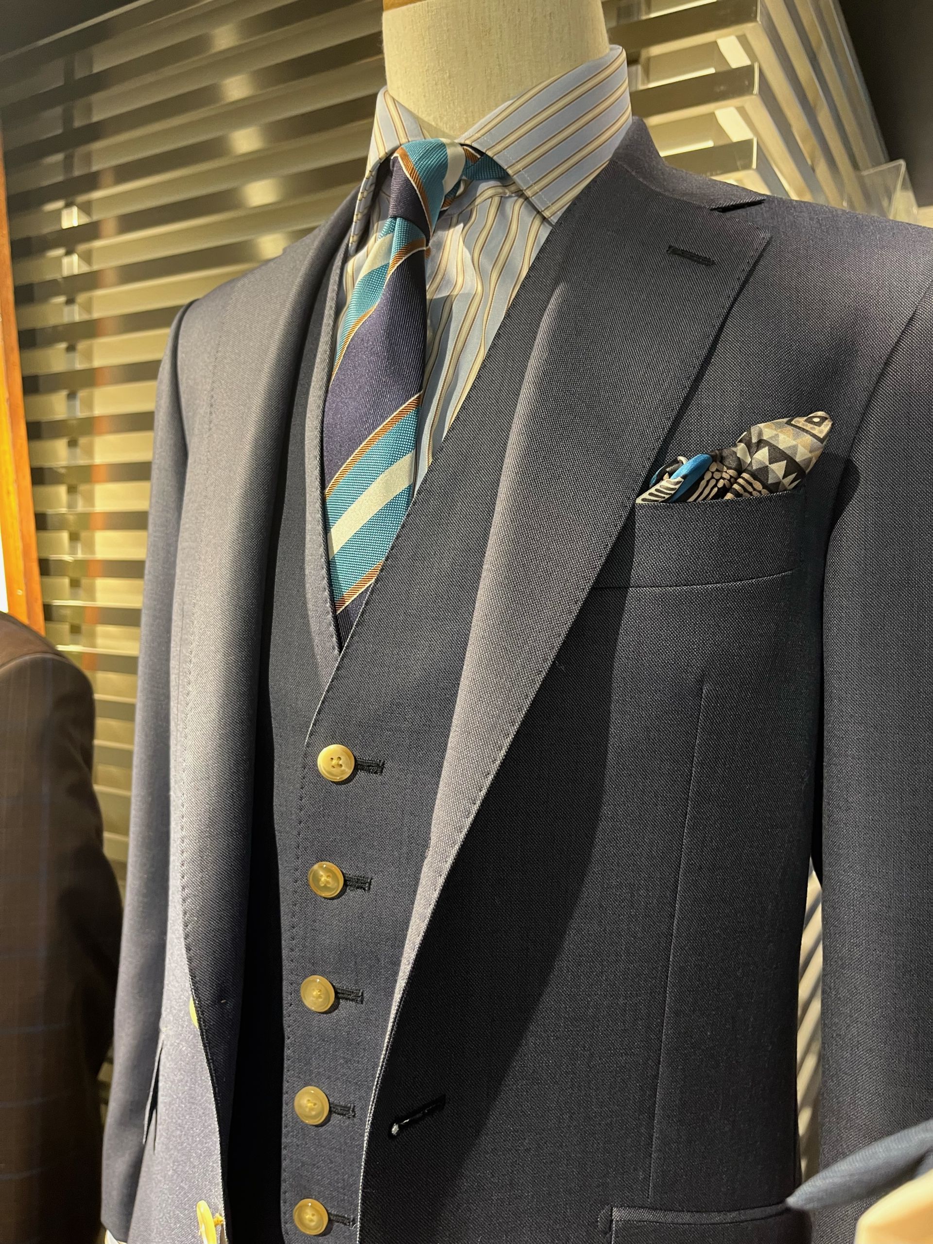 英国生地はイタリアの生地に比べて光沢感は少なめですが、