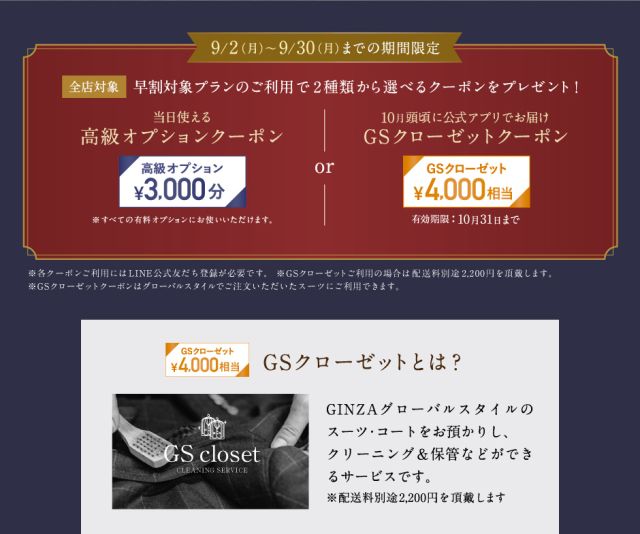 高級オプション3000円分orGSクローゼットクーポンをお選びいただけます。