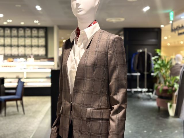 襟が無い分スカーフで首元にボリューム・動きを出してあげると