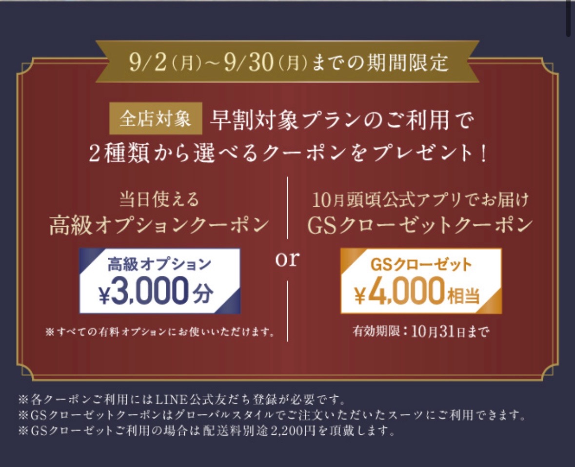 少しご紹介が遅くなってしまいましたが9月2日から30日まで限定のプランの早割フェアとGSクロゼットの紹介!
