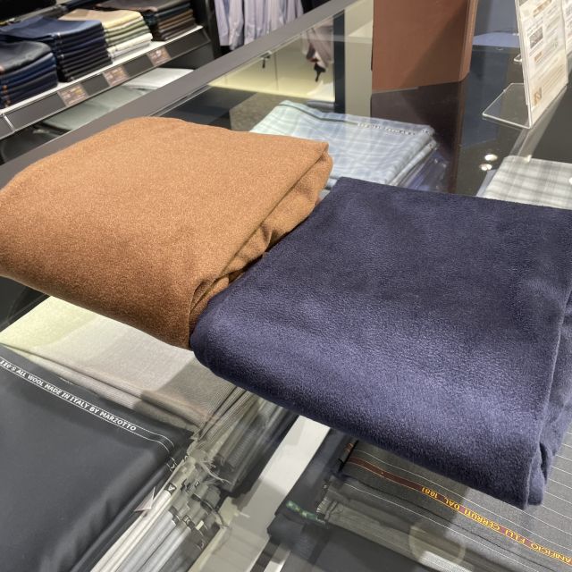 ネイビーはどのスーツとも相性がいいですしキャメルはカシミアの素材の良さを最大限引き出してくれる色合いでもあります!