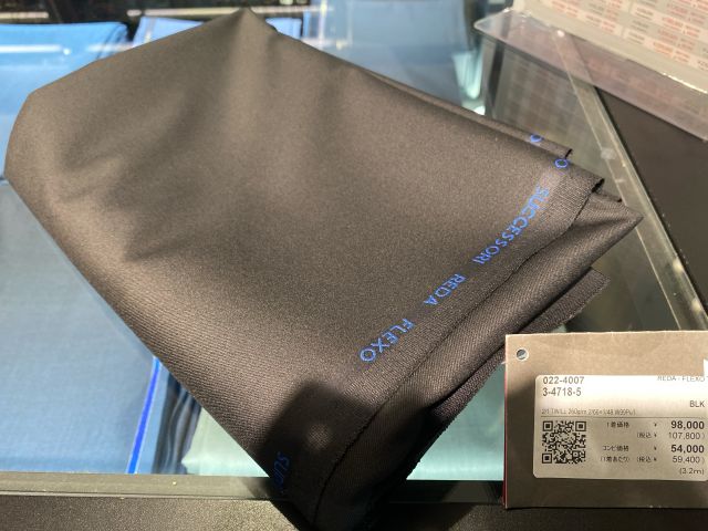 紺ジャケットは肩パッドを抜いたアンコンモデルですので、軽く羽織れるくらいの感覚で着用していただけます。生地はこちらです。