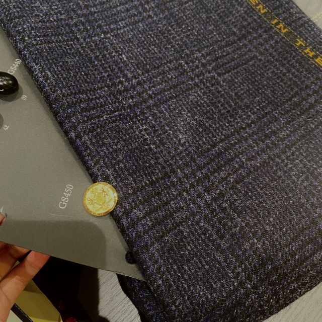 少し紫がかったネイビーにうっすらと黒のチェックが入っている