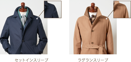 本来、ステンカラーコートは肩から袖までつながったラグランスリーブが基本ですが、