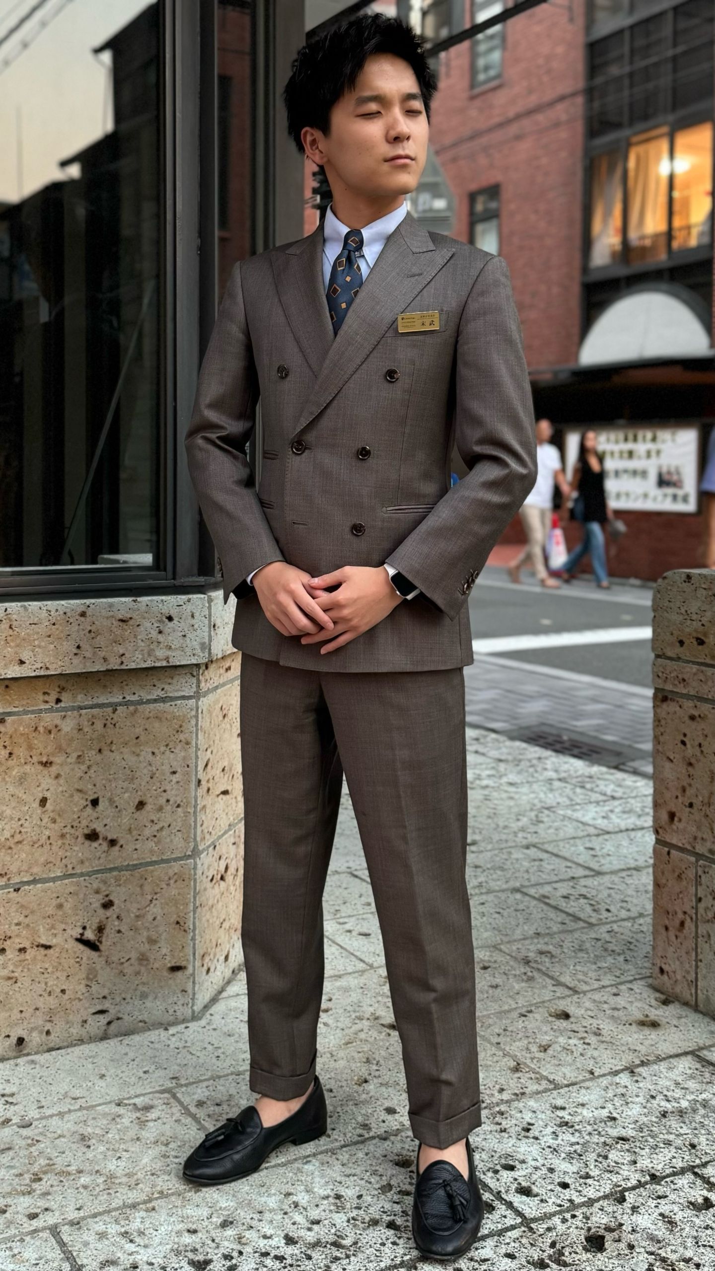 いつもスーツは細いのですが、今回は思い切って太くしてみようと思います。