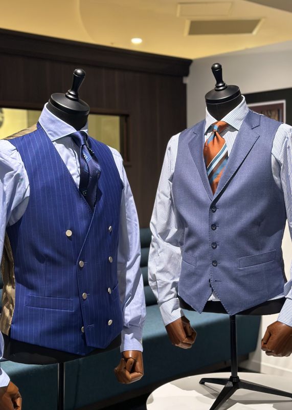 中のベストに関しても、シングルの襟無しが標準なのですが、