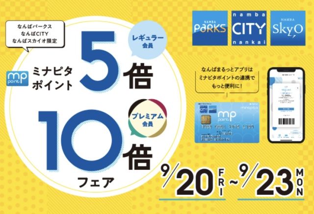 9/20-9/23はミナピタポイントが5倍、10倍になります。