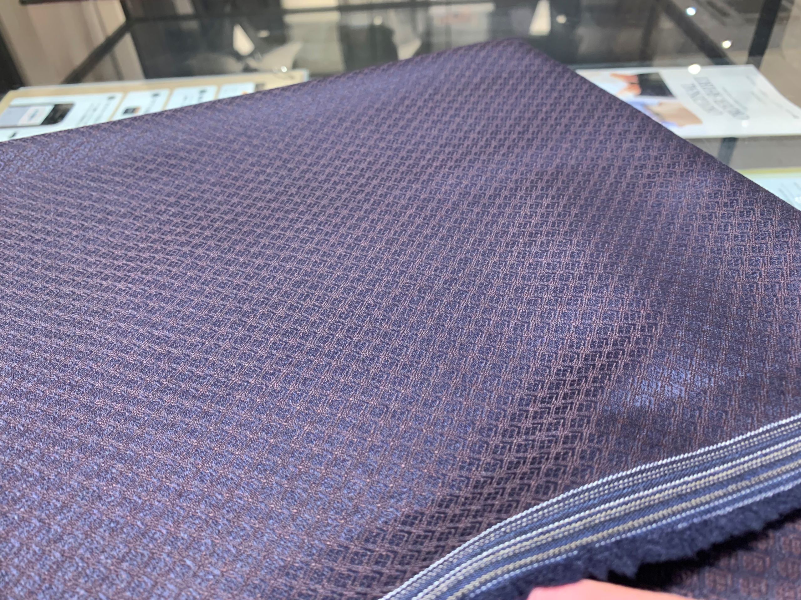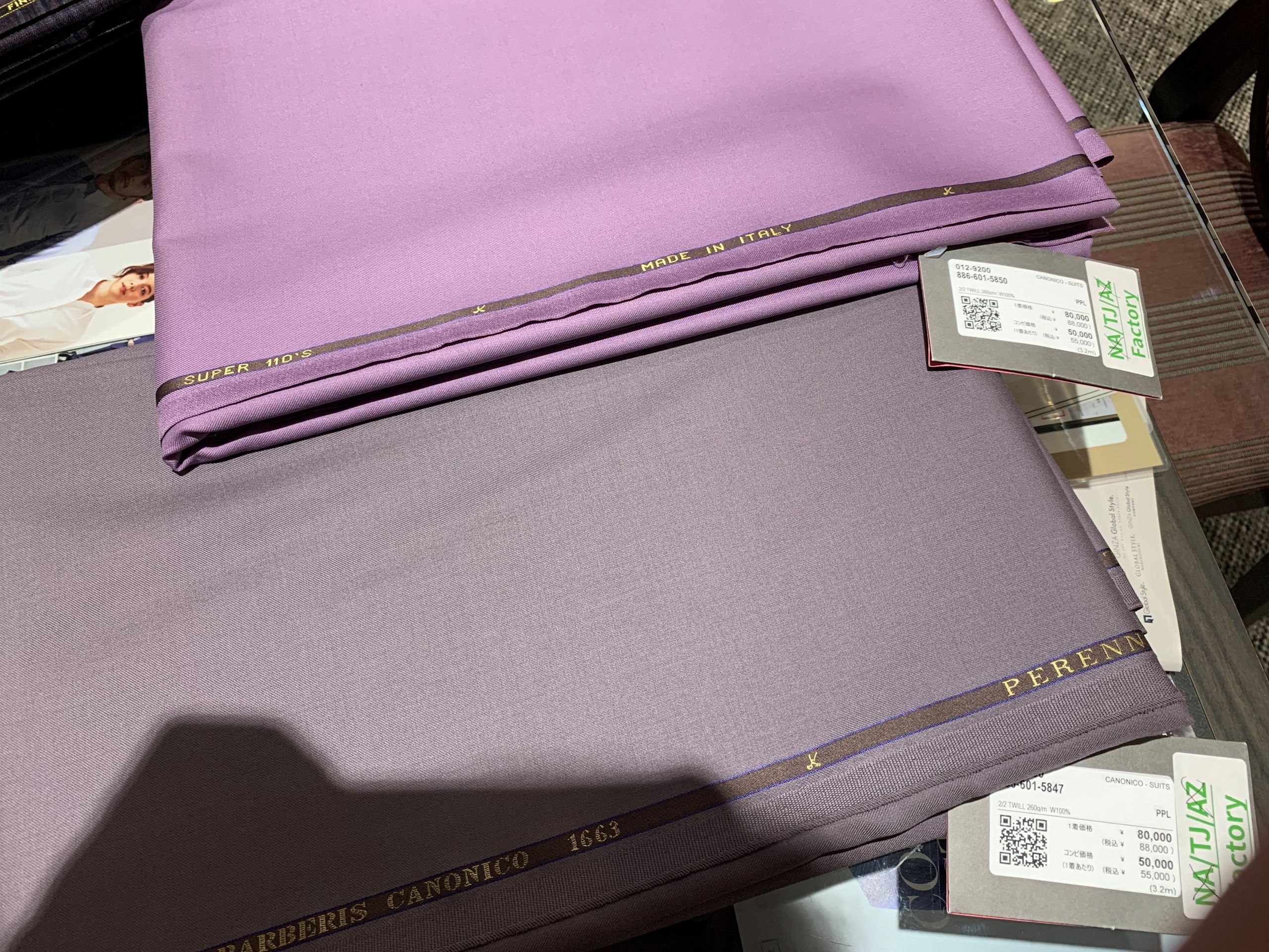 本日は店頭にちらほら並んでいる紫の生地を紹介します!