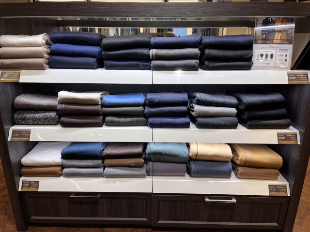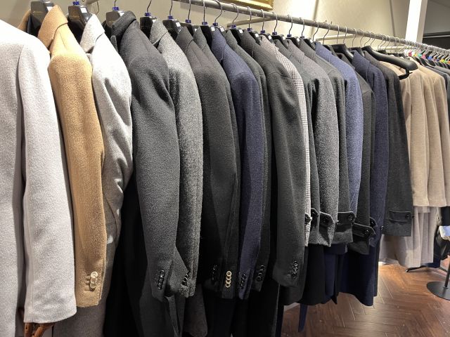 店内たくさんのコート生地取り揃えております。