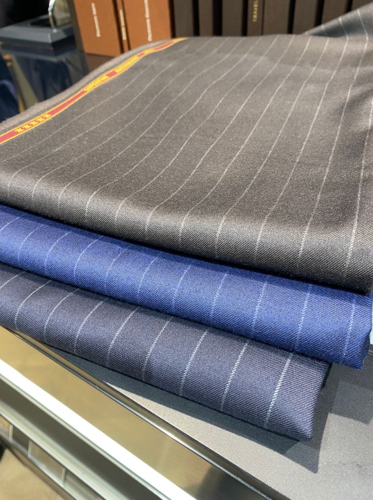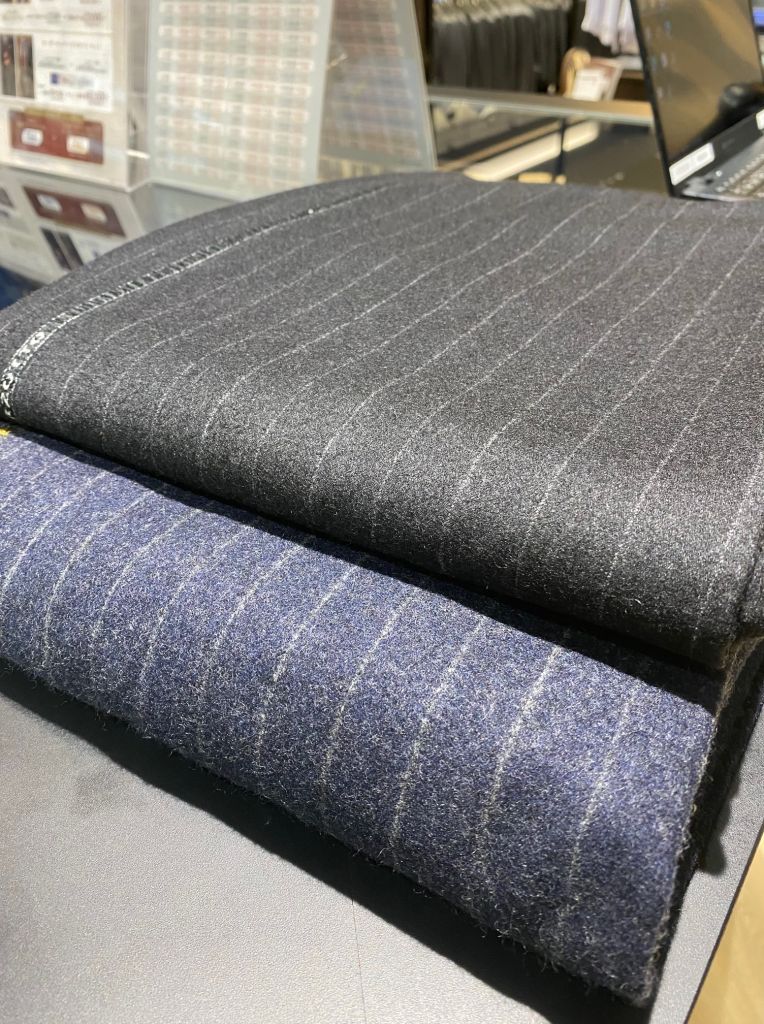 この秋冬の傾向としては、久しぶりにピッチ幅のあるストライプが流れとしてあります。