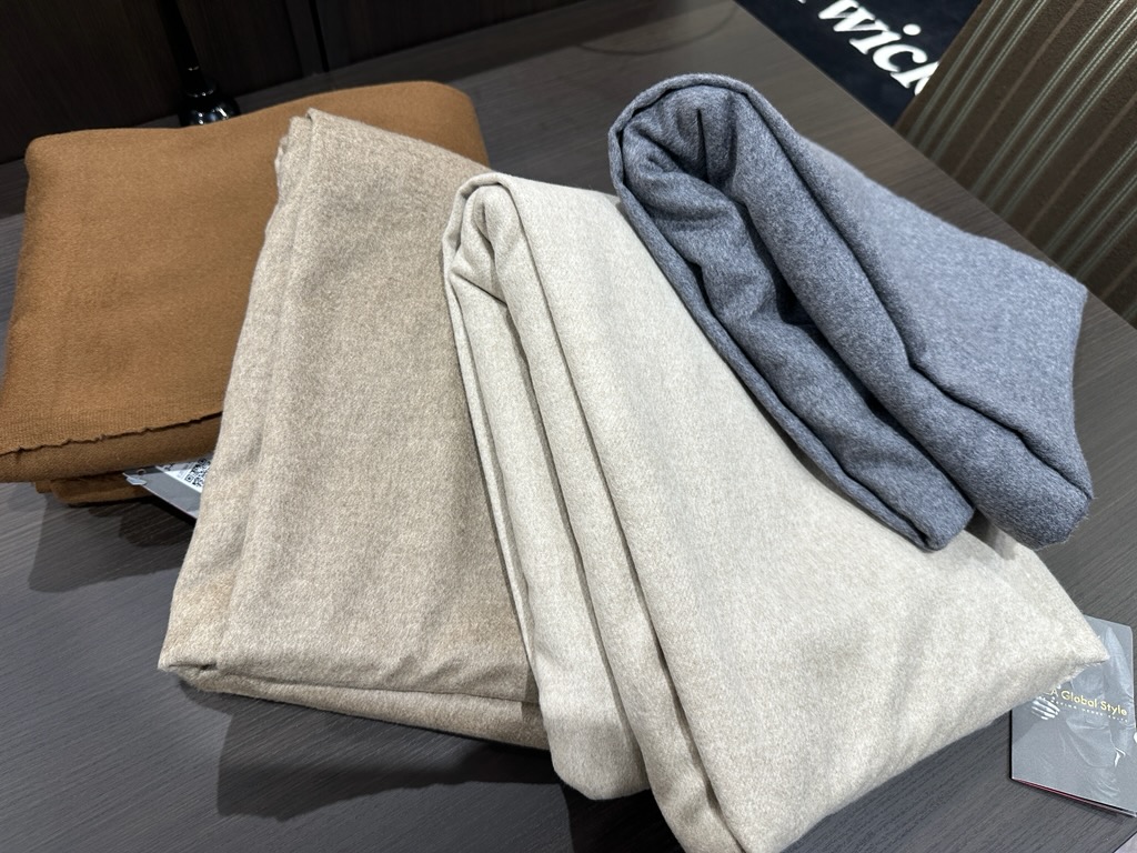 三種類の生地の中でも保温性はカシミアが一番暖かい生地になります。