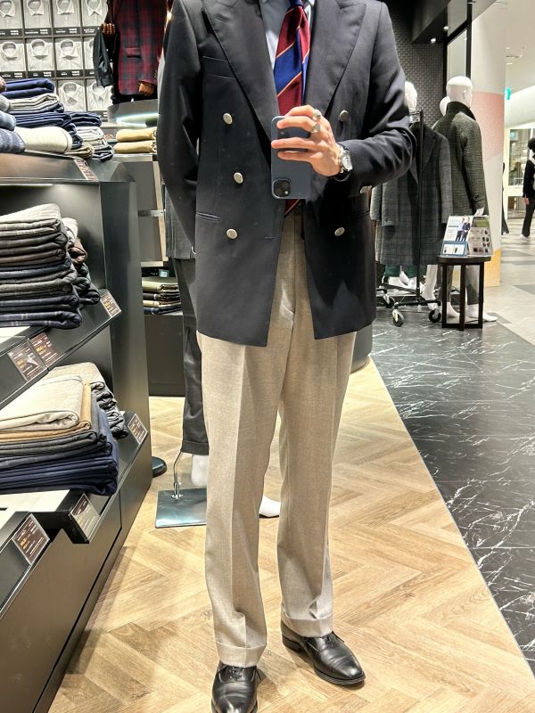 そこまでベージュ感強すぎずグレー寄りの色なので、ジャケットも合わせやすいかと…。