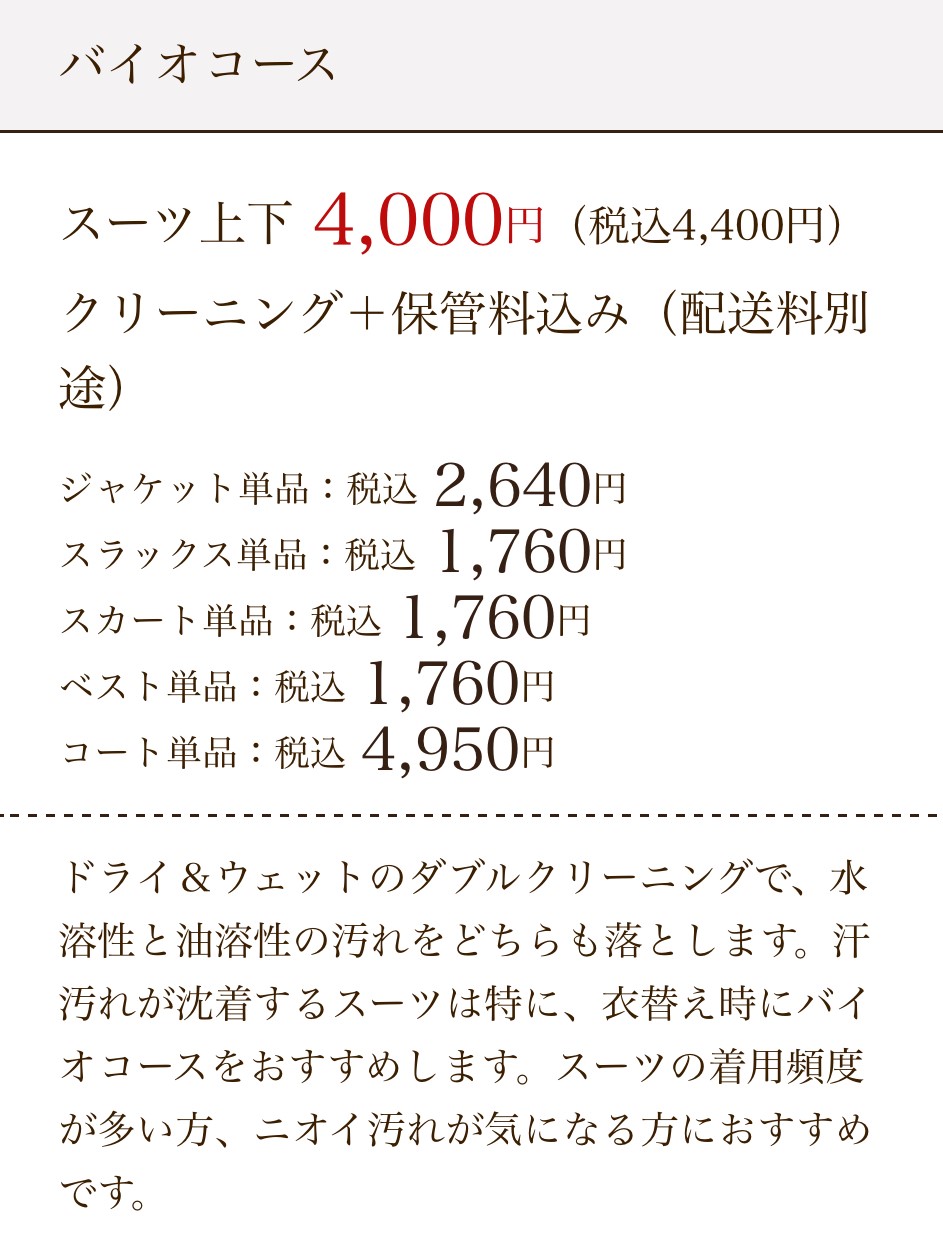 (いずれのコースも2着までだと配送料金が別途¥2,000頂戴します)