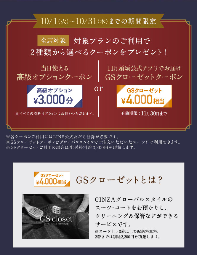 ¥3,000分のクーポンか¥4,000円相当のGSクローゼット が選べる大変お得なフェアです!!
