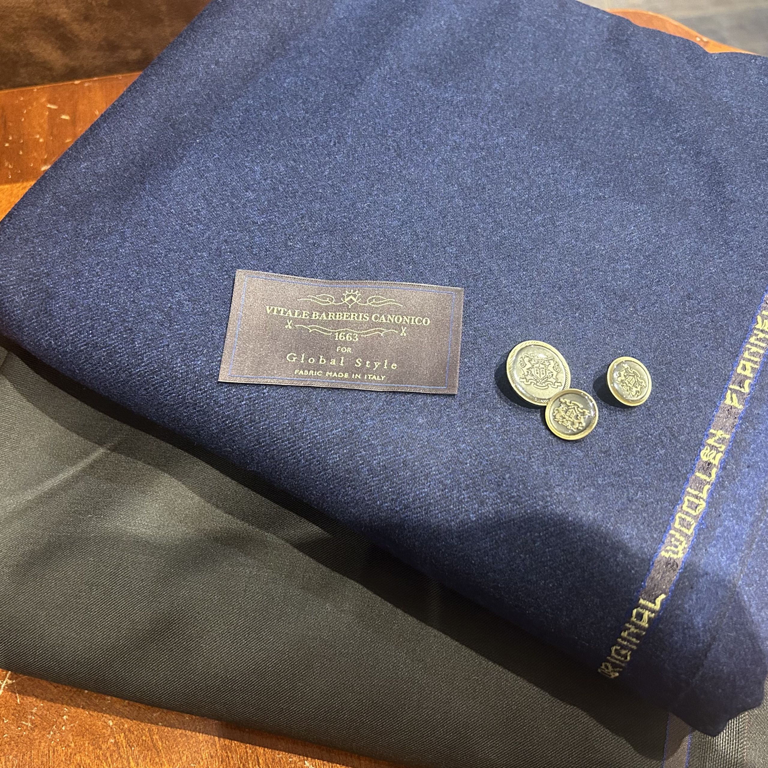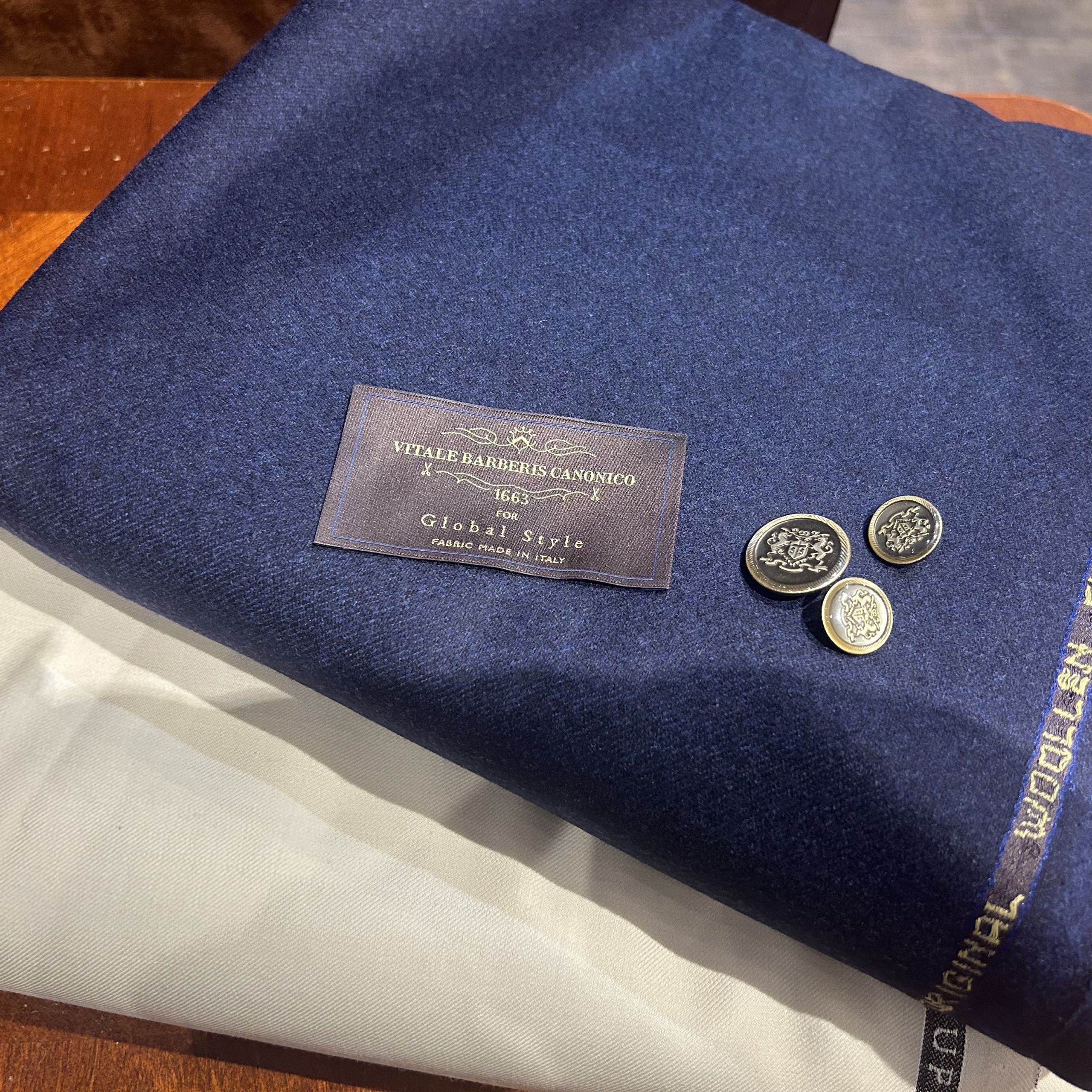 初めて作るジャケットは王道の紺ブレから仕立ててみようというのもあり、挑戦しやすいジャケパンです。