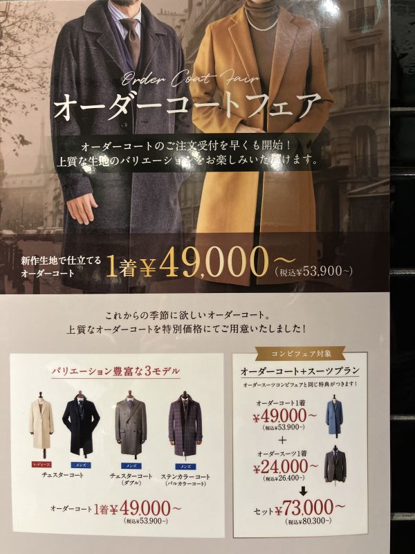 グローバルスタイルではオーダーコートもお取り扱いがございますので、