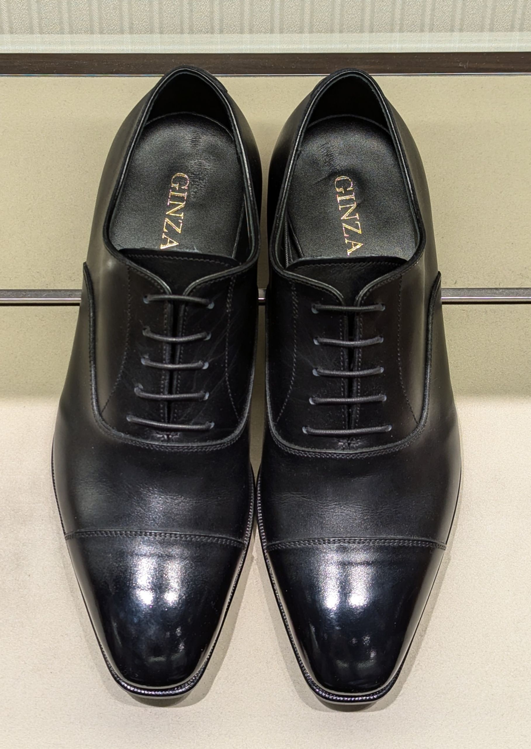 靴はオックスフォード・シューズ(黒のストレートチップ)です。