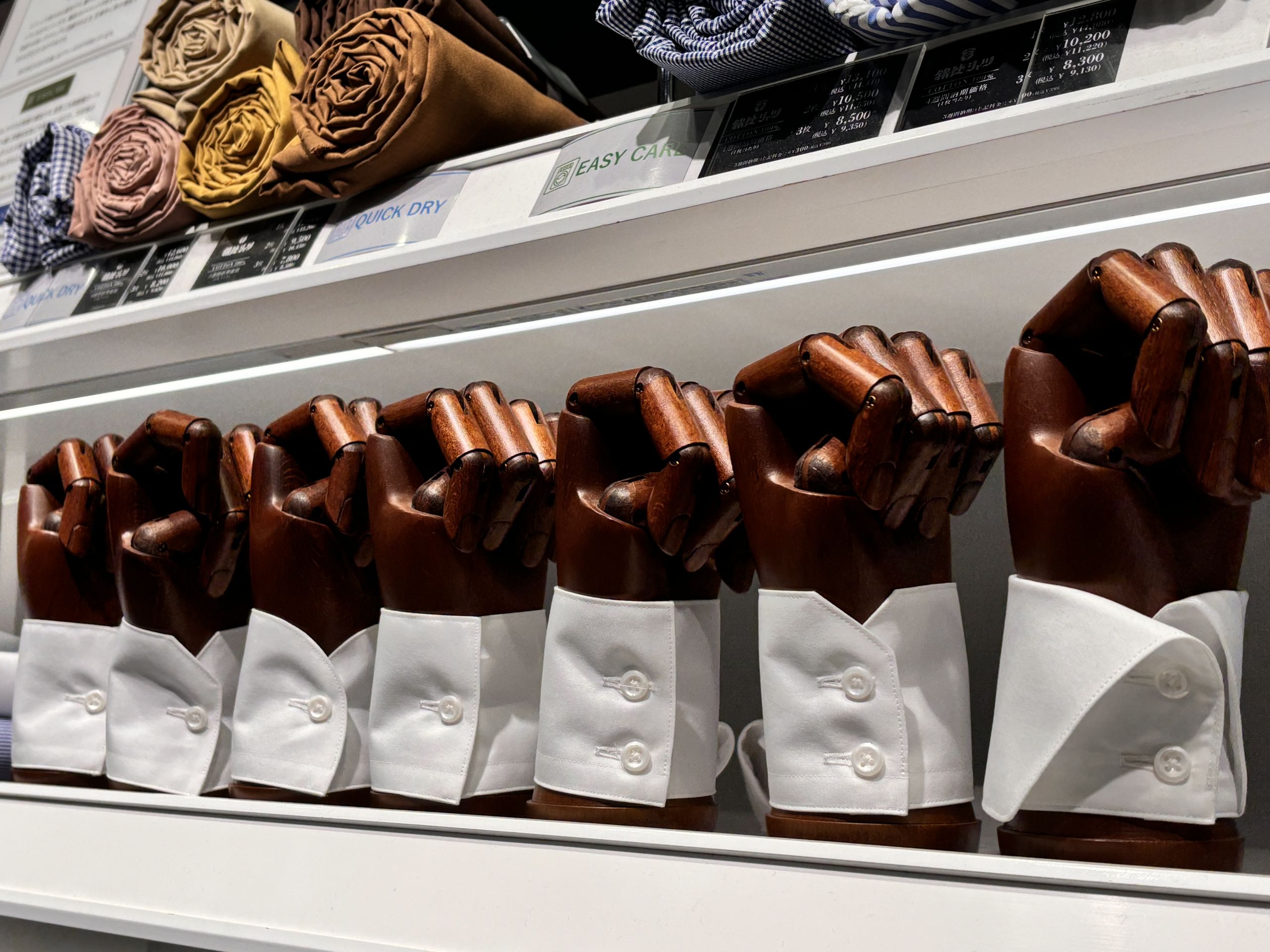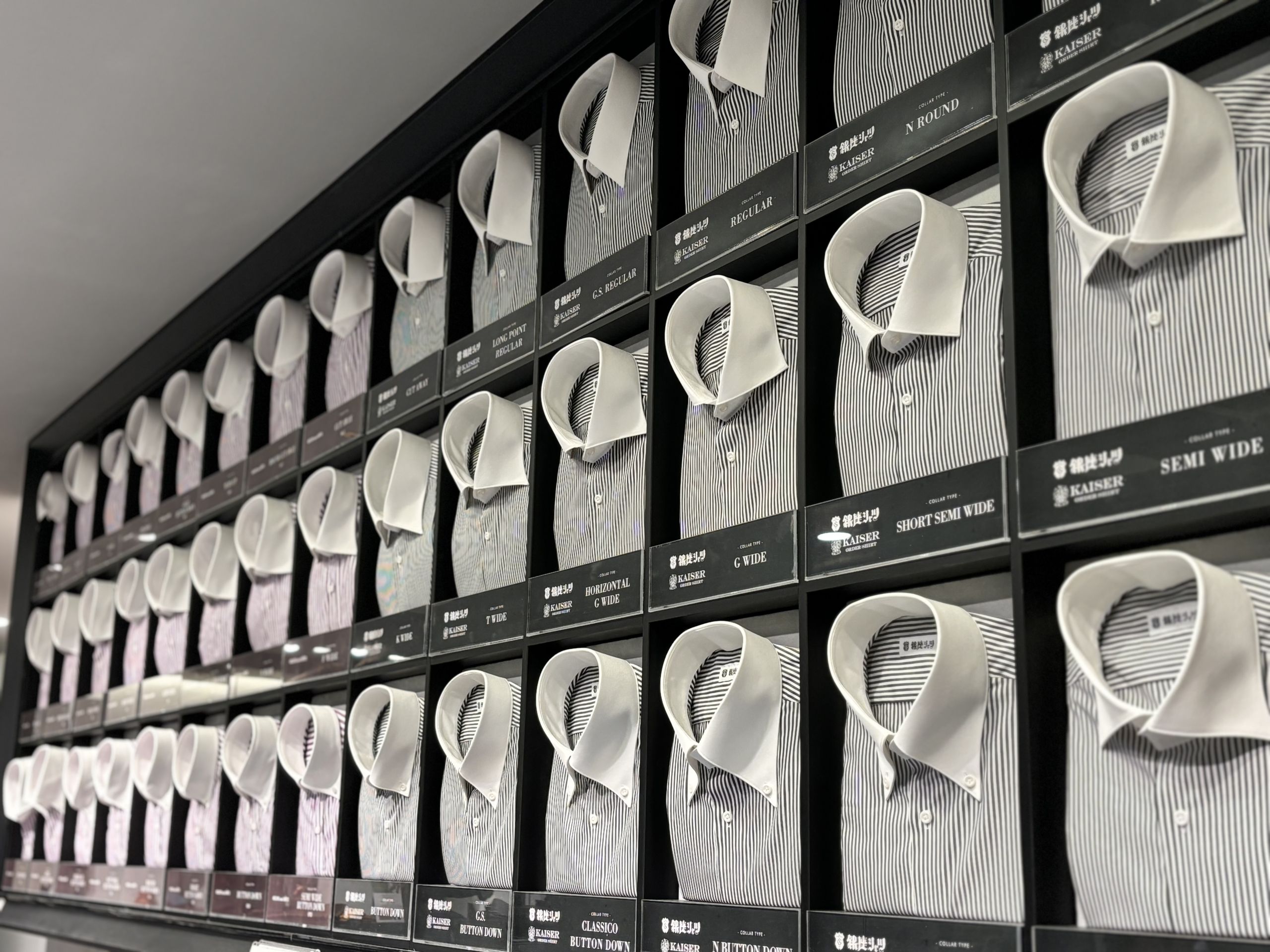 衿の形状やカフスのデザイン、ボタンのカラーなども