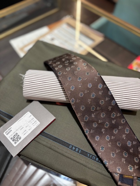 ネイビーストライプ!! 結構珍しい柄になってる気が・・・ 目立つ感じではないのでお仕事用の方にも おススメの1着です٩( ''ω'' )و これ以外にもいっぱい生地あります!!!