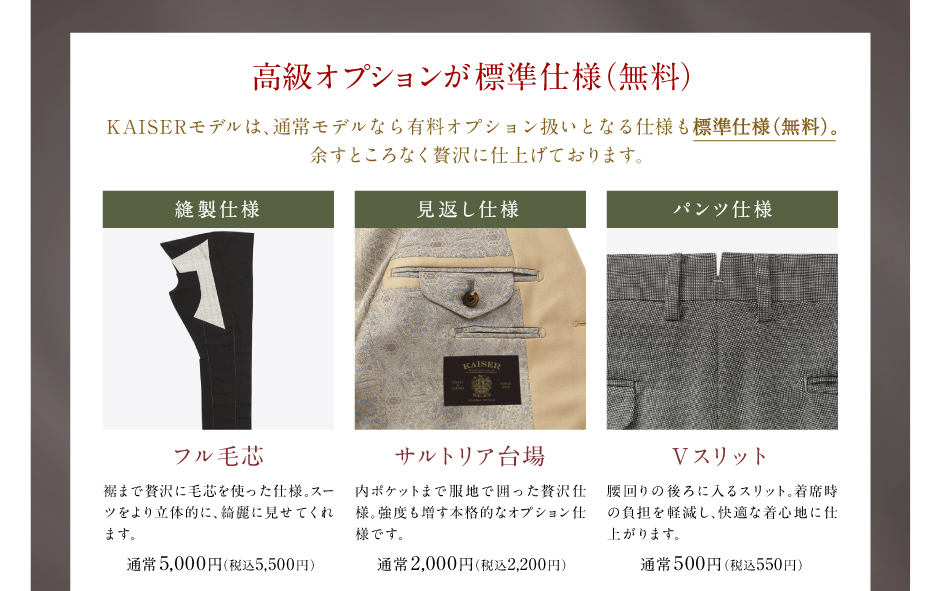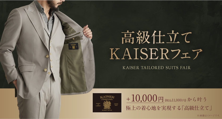 この機会に最高峰グレードのスーツKAISERモデルでお仕立てはいかがでしょうか。
