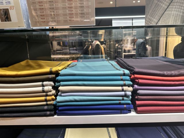 お仕事用のスーツ以外にもカラースーツの生地沢山ご用意あるん!