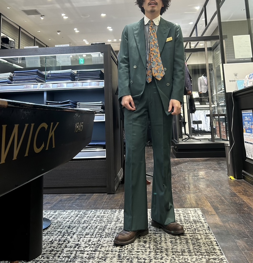 2年前に同僚の結婚式参列用で作ったグリーンのダブルスーツ。