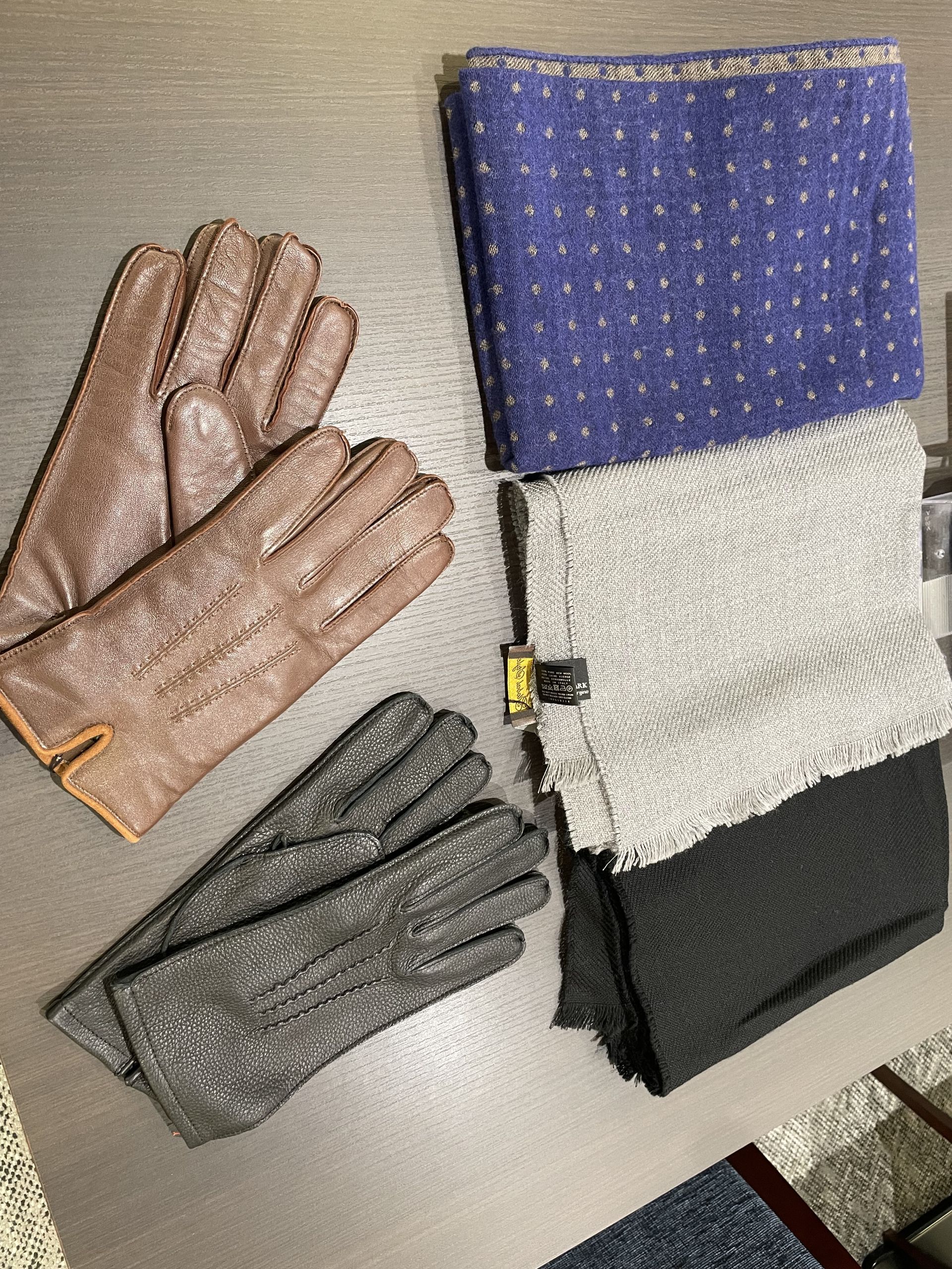 手袋はブラウン、ブラックなどこちらもお使いいただきやすいお色味ですね。