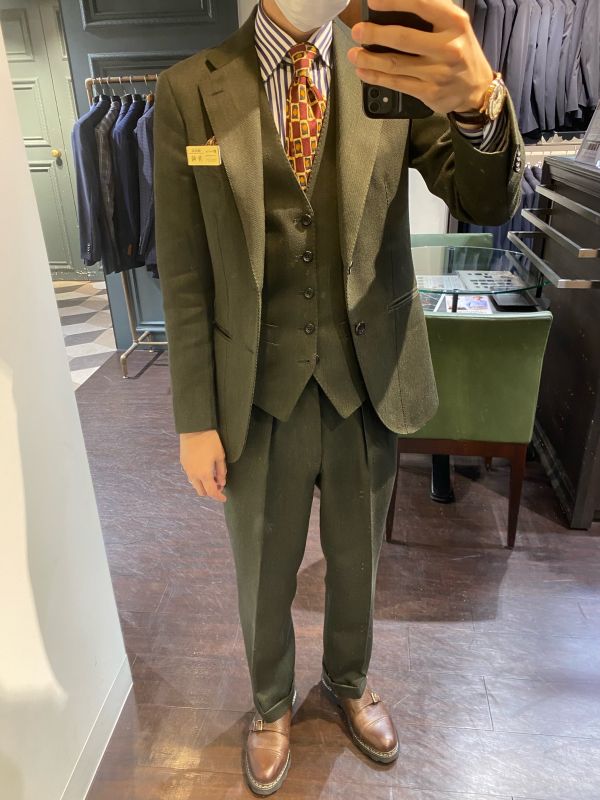 さて、そんなことはさておき、本日はグリーンのスーツのご紹介!!