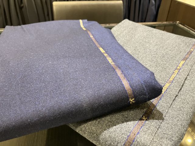 同じダブルスーツでも生地感がや色味で雰囲気が変わります。