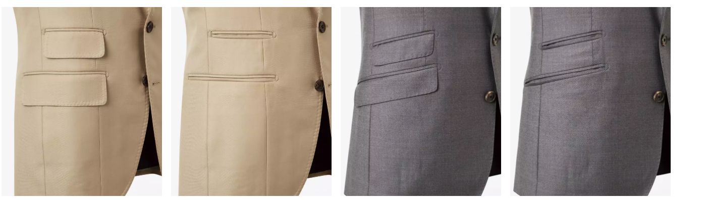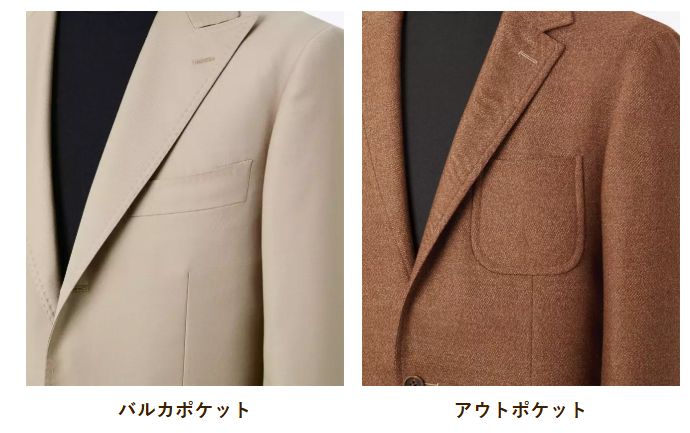 ・ポケットを表にだしてカジュアルに見せるアウトポケット(シングルスーツのみ)