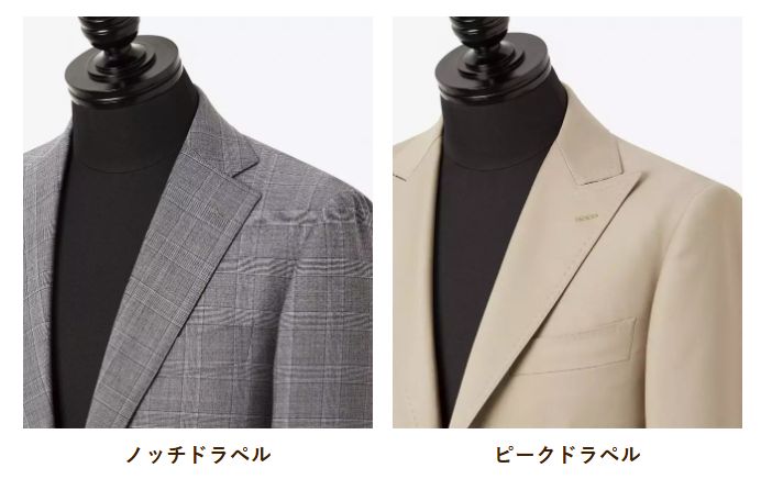 ・ダブルスーツに多いピークドラベル(アンコンモデルの場合はダブルジャケットのみ選択可能)