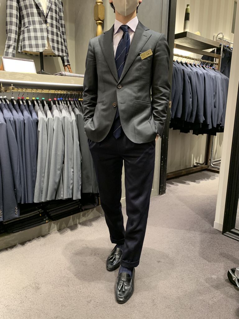 ジャケット紺×スラックスGRYが王道のように、ジャケットGRY×スラックス紺も組み合わせとして王道の一つ。