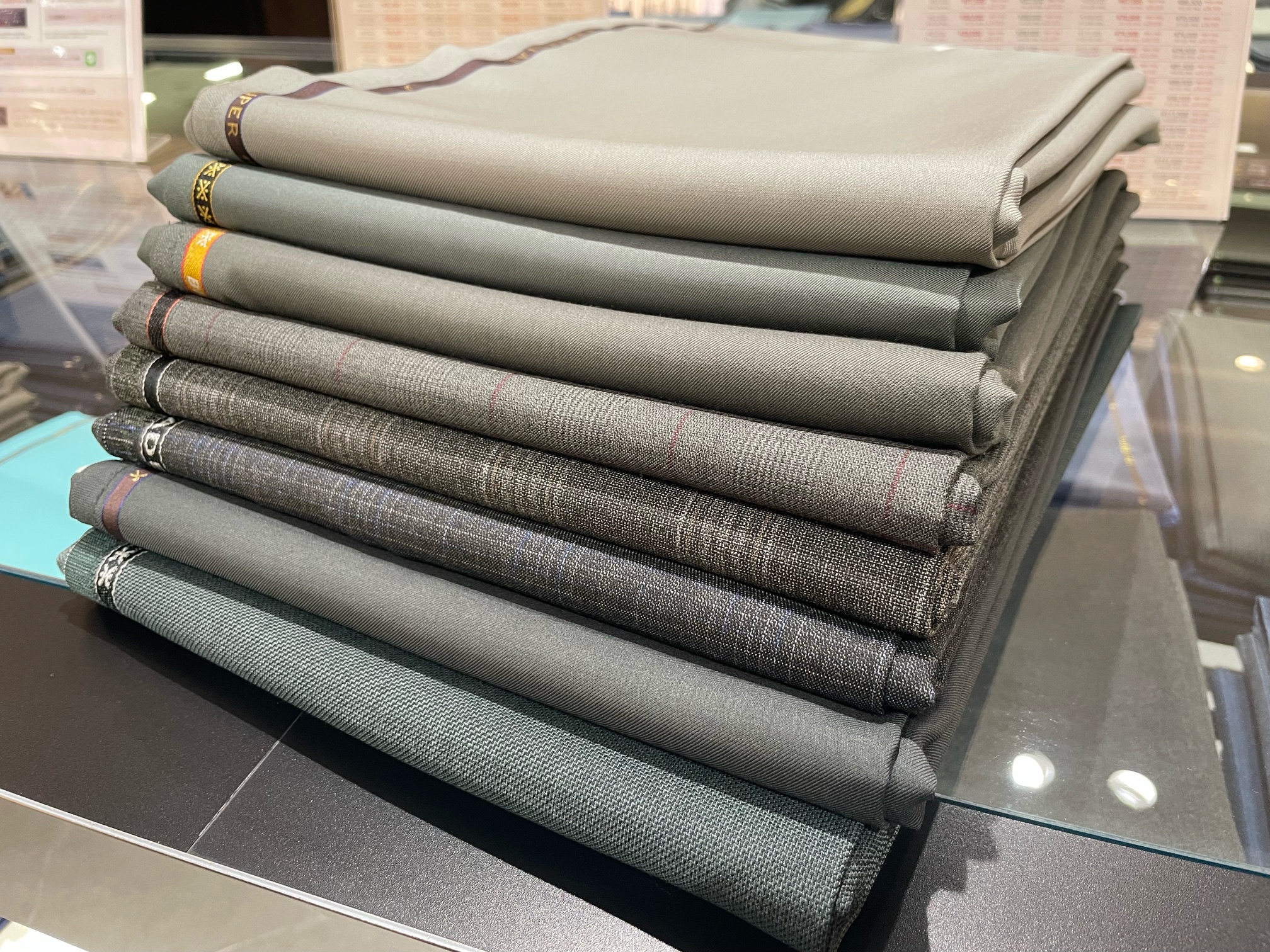 本日は成人式用、パーティー用、ビジネス用で人気1位ブラウンに次いで人気なグリーン生地をご紹介いたします。