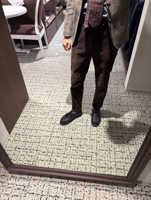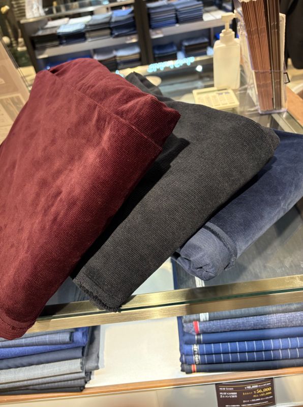 既製服でもこの時期はコーデュロイ素材の物を多く見かけます。