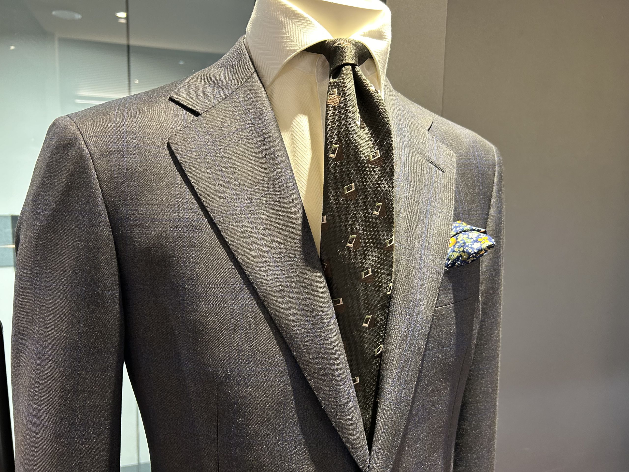 チェックの柄も控えめなのでビジネスシーンやフォーマルシーンでもお使いいただける生地です。