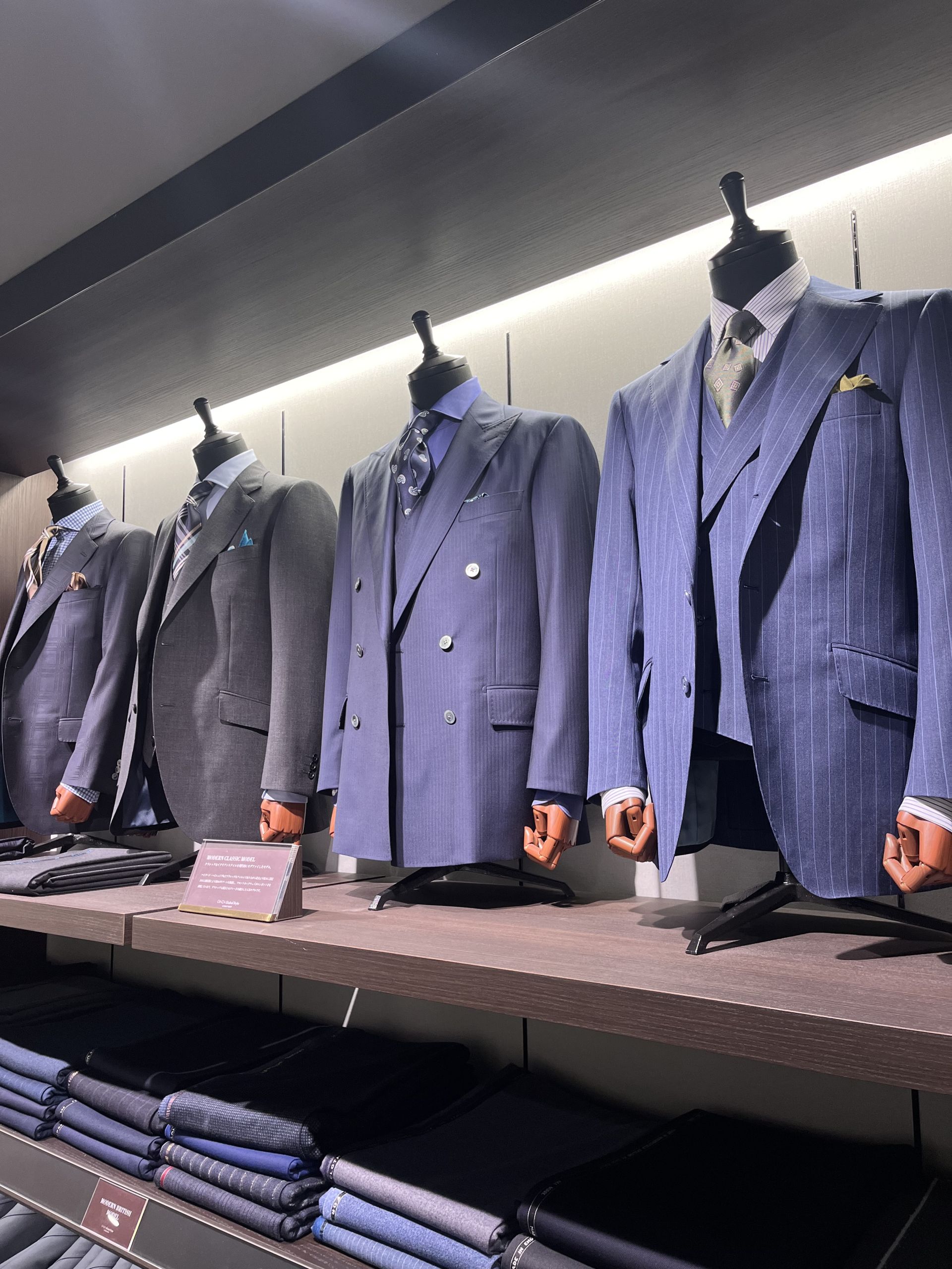 カチッとセミフォーマルでも着用できるネイビースーツ!