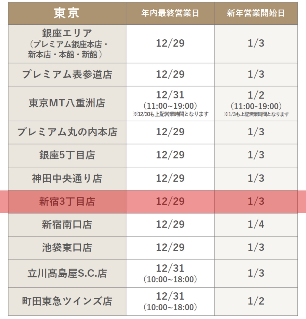 東京エリア以外の営業日を知りたい方は⇩⇩⇩のリンクからご覧くださいませ!