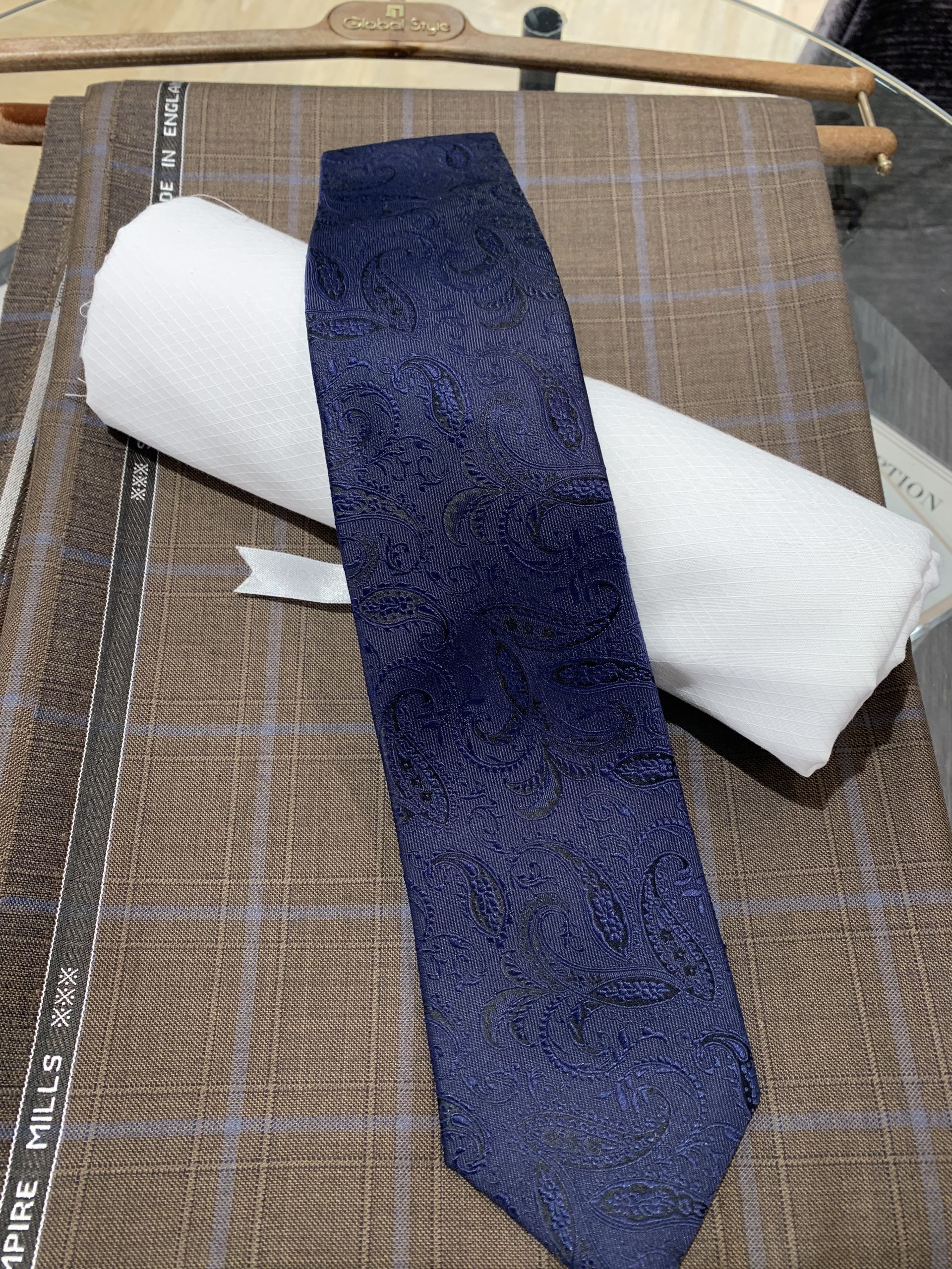 明るいブラウンにブルーのチェックが印象的で、少しクラシックなこの生地で仕立てるのはいかがでしょう。