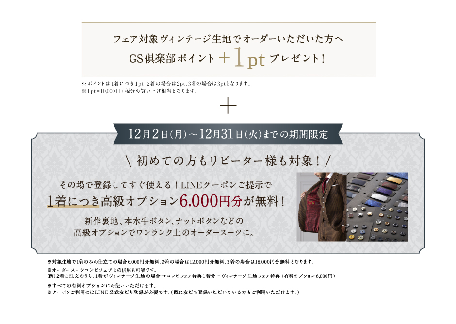1着につき6000円分の有料オプションが無料でお選びいただけます!!