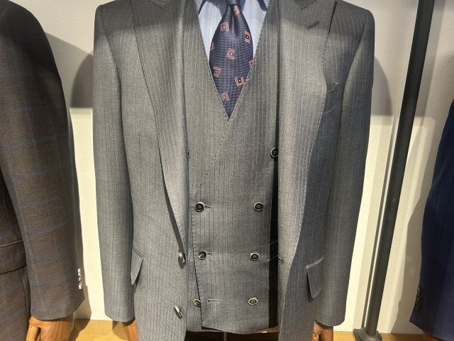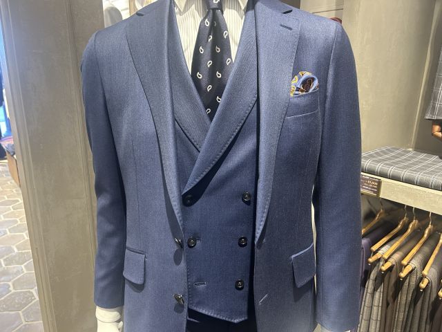 シングルベストの3ピースとはガラッと印象が変わるので、今までシングルベストばかりお仕立てのお客様におすすめです。