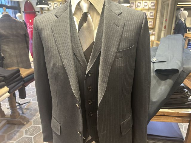 新年あけますと新社会人に向けてスーツのお仕立てや、ビジネス用のスーツの新調などをお考えだと思いますので、今まで上下のみのスーツをお持ちであれば新しくベストありでお仕立てするのもおすすめです!