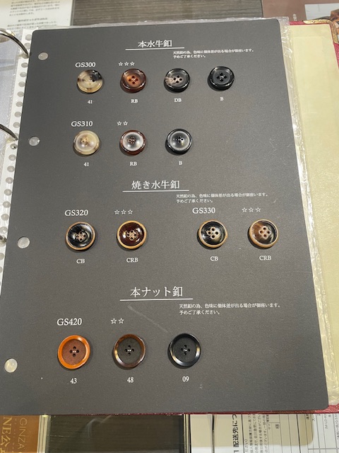 グローバルスタイルは、釦、裏地の種類もたくさんご用意があります!